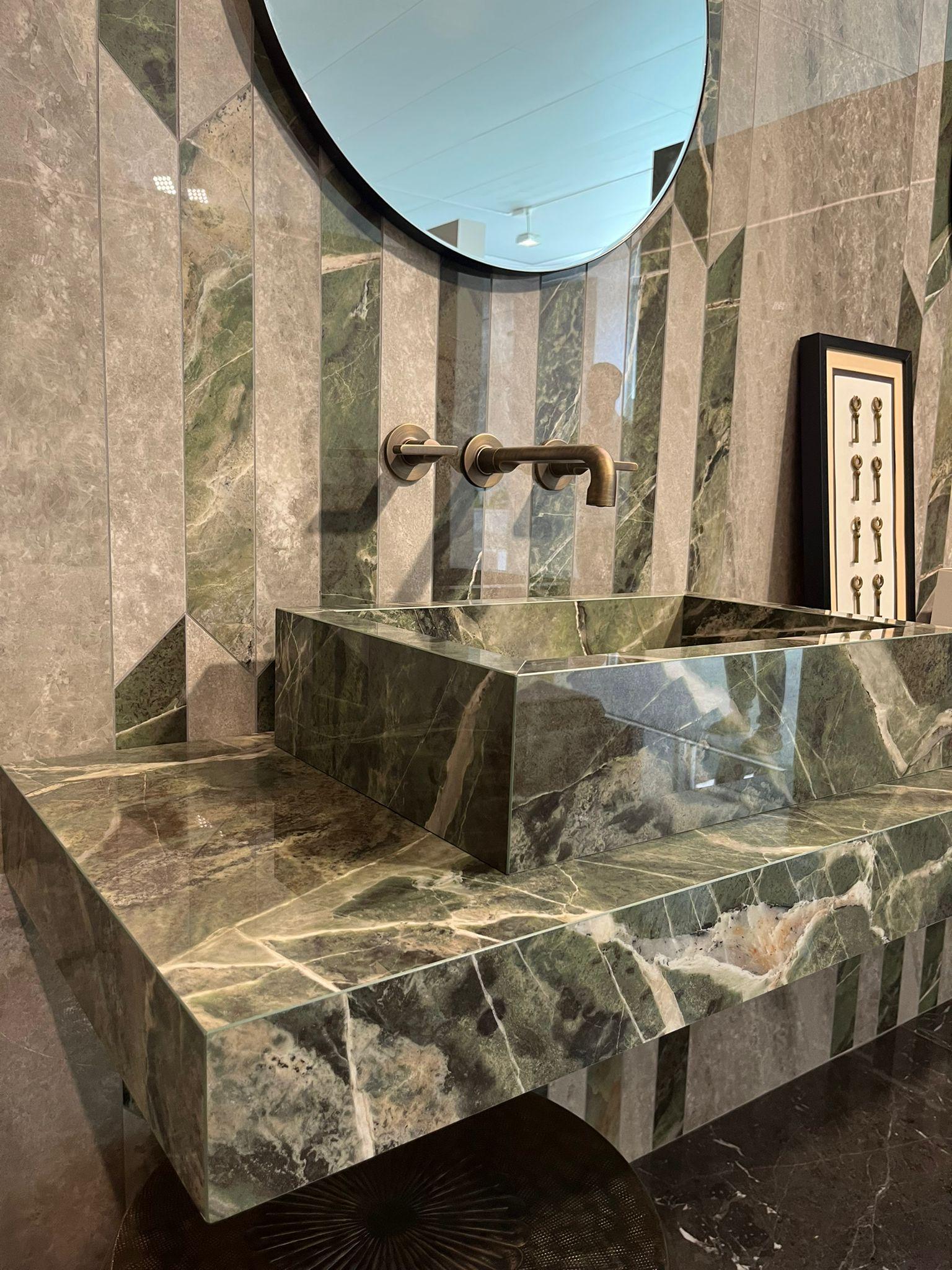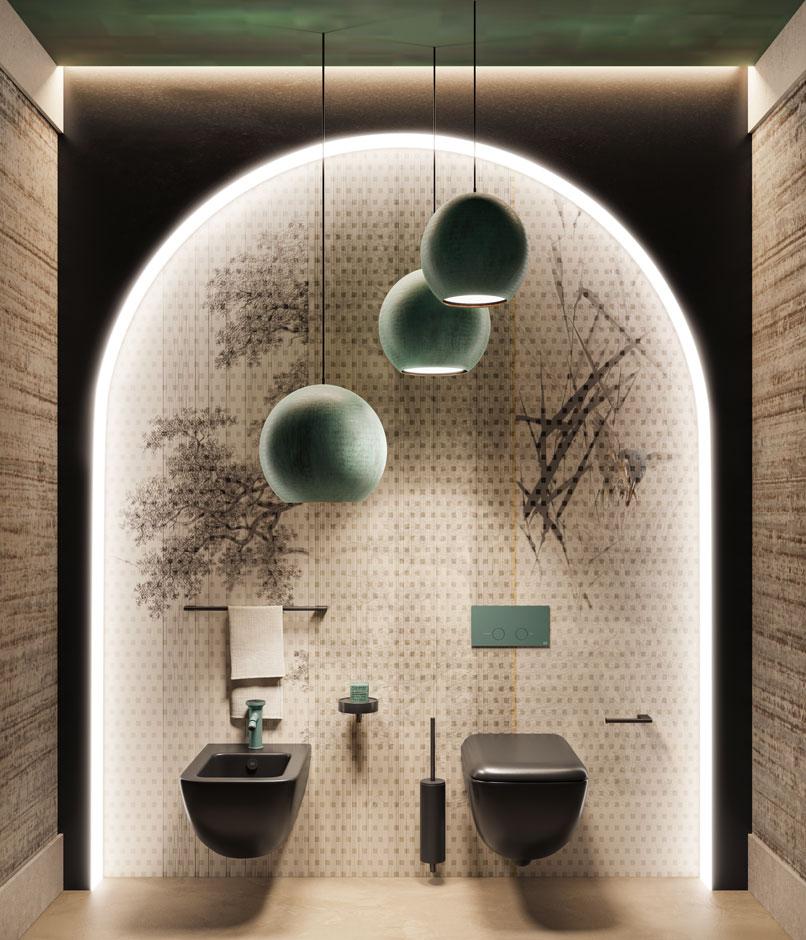 Zelena ima simboličko značenje otvaranja horizonta i pomjeranja kupaonice prema van. Unosi prirodu u dom i nadopunjuje sve vrste drveta i biljaka. Pjesnici i ekolozi tako mogu slobodno doživjeti najminimalniji prostor, zatvoriti oči i slušati umirujući šum vode. Ovo je kromatski portret onih koji se regeneriraju u kontaktu s prirodom.