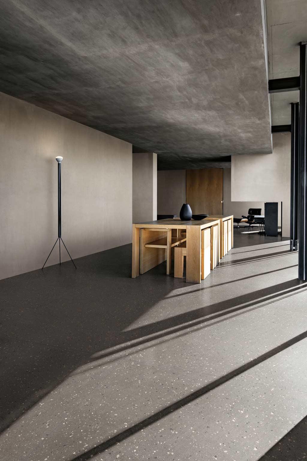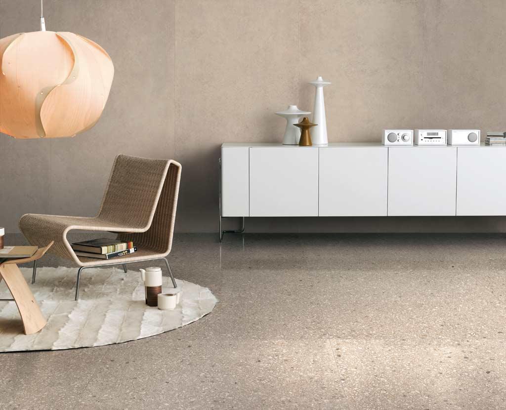 Kolekcija Earthtech predstavlja povratak izvorima robne marke Floor Gres kroz tehnički proizvod čija površina i debljina proizlaze iz spontanog miješanja pažljivo odabranih fragmenata i pigmenata različitih nijansi.