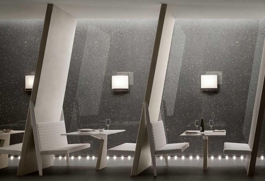 Izvedeni od četiri grafičke teme, označeni kao Empatia, Radici, Ritmo i Colore, ova porodica keramike u velikim formatima jasno iskazuje vizuelnu ekstrovertnost sa motivima koji se prožimaju sa različitim spletovima grafike i boja koje oponašaju površine kamena, tkanina i kože.