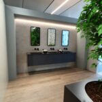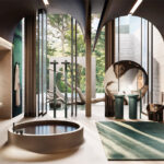 Zelena ima simboličko značenje otvaranja horizonta i pomjeranja kupaonice prema van. Unosi prirodu u dom i nadopunjuje sve vrste drveta i biljaka. Pjesnici i ekolozi tako mogu slobodno doživjeti najminimalniji prostor, zatvoriti oči i slušati umirujući šum vode. Ovo je kromatski portret onih koji se regeneriraju u kontaktu s prirodom.